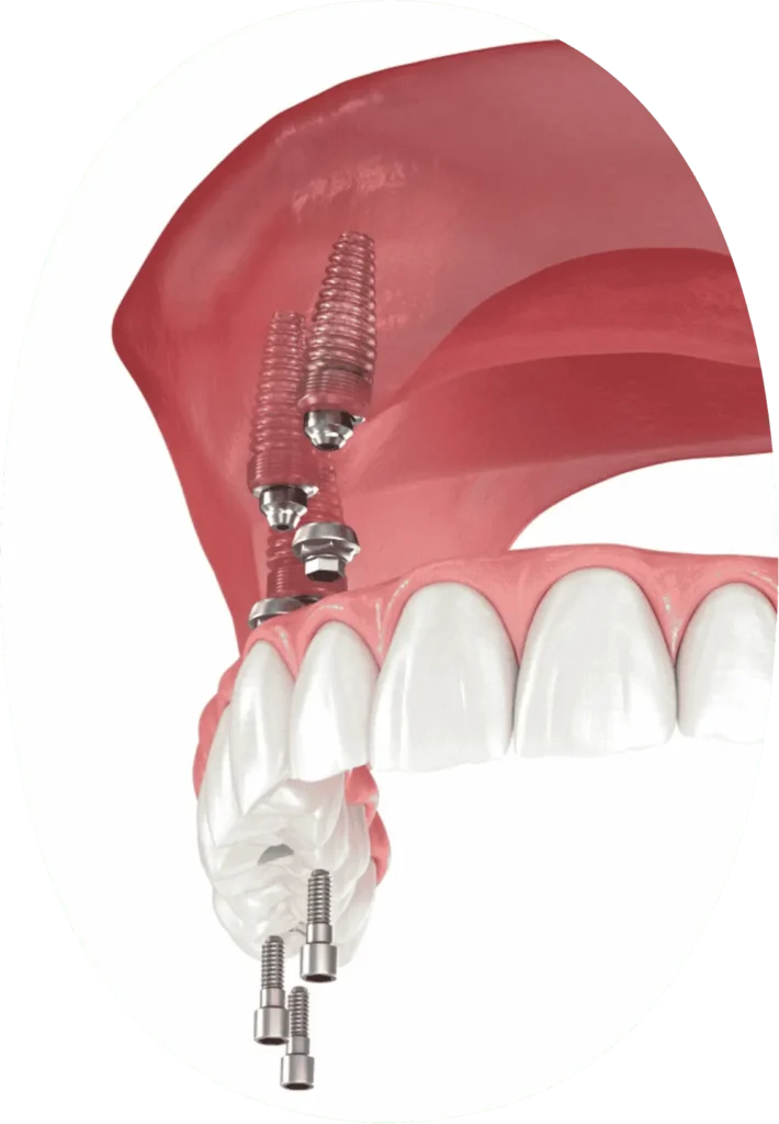Si tratta di una protesi fissa implantare che non utilizza né viti né cemento per ancorare gli elementi dentari all’impianto ma solo una ritenzione meccanica.