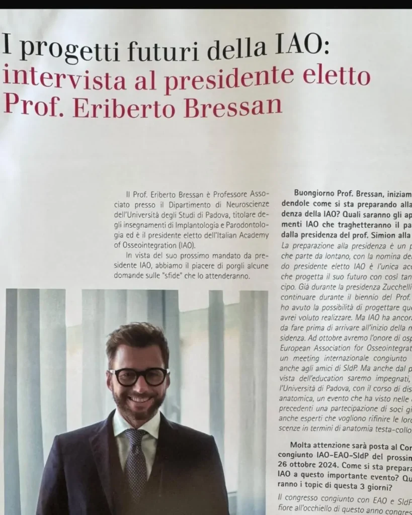 Fondatore e Presidente eletto dell’Italian Academy of Osseointegration (IAO)